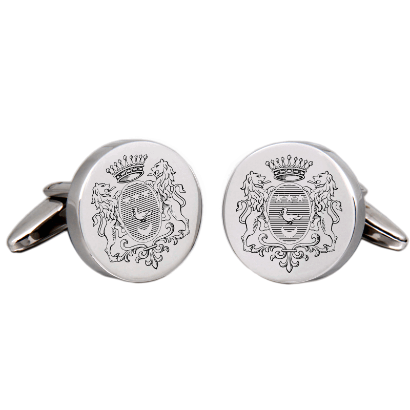 Diese runden Manschettenknöpfe aus poliertem Edelstahl schmücken jedes Hemd und sind auch für Damenblusen eine besondere Zierde.